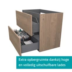 Modulo Badkamermeubel Met Wastafel | 80 Cm Middenbruin Eiken Vlak Front Beton 2 Lades Onder Elkaar