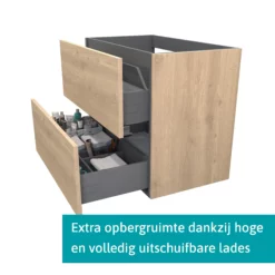 Modulo Badkamermeubel Met Wastafel | 90 Cm Lichtbruin Eiken Vlak Front Keramiek 2 Lades Onder Elkaar