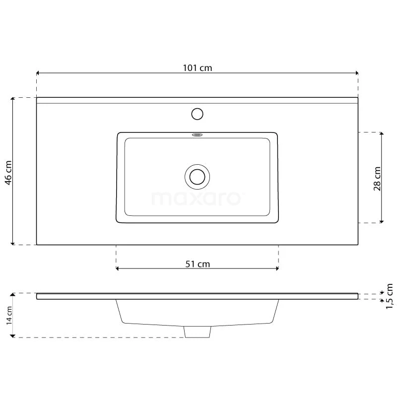Het Box-badkamermeubel van 100 cm heeft een uitstekende prijs-kwaliteitverhouding en staat dagelijks centraal voor uw persoonlijke verzorging. De wastafel is uitgerust met een kraangat en geschikt voor één persoon tegelijk. Daarnaast biedt de kast met dubbele deuren voldoende ruimte om uw toilet- en verzorgingsproducten netjes op te bergen. Bovendien sluiten de deuren geruisloos door het softclosesysteem.