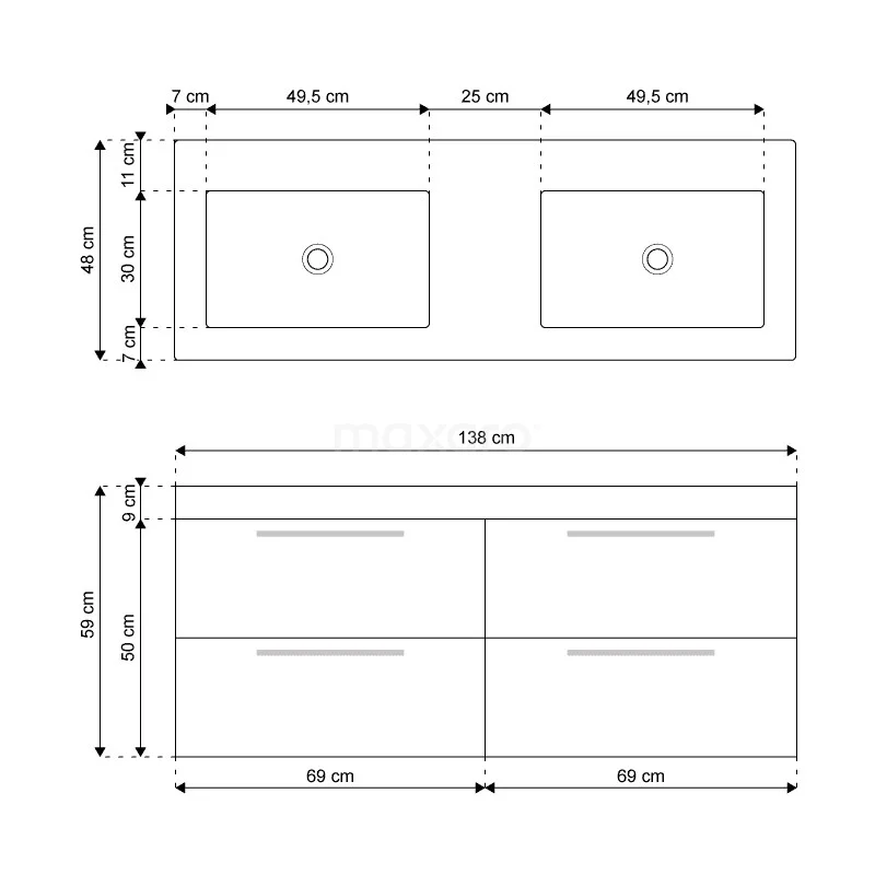 Het royale Canto-badkamermeubel van 138 cm staat dagelijks centraal voor uw persoonlijke verzorging. De dubbele wastafel zonder kraangaten is geschikt om te combineren met een inbouw wastafelkraan en door meerdere personen tegelijk te gebruiken. Daarnaast bieden de 4 lades voldoende ruimte om uw toilet- en verzorgingsproducten op te bergen. Bovendien sluiten deze geruisloos door het softclosesysteem.