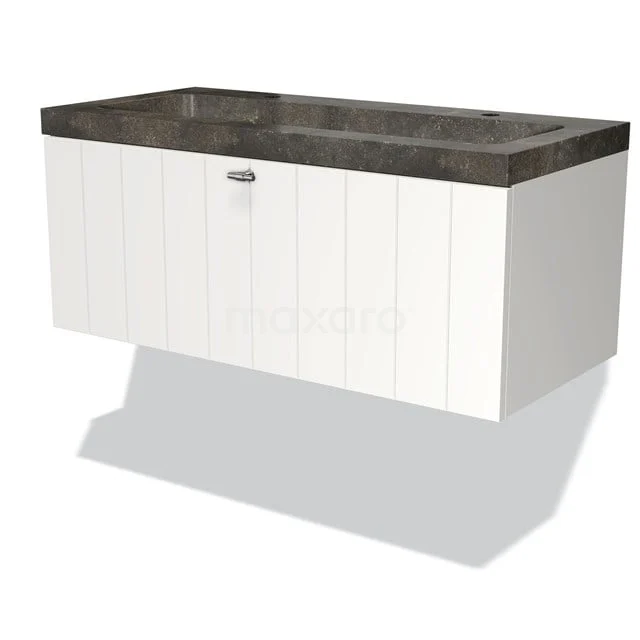 Modulo Badkamermeubel Met Wastafel | 100 Cm Mat Wit Lamel Front Natuursteen 1 Lade
