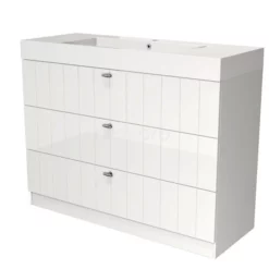 Dankzij het stijlvolle design is dit badkamermeubel de eyecatcher van uw badkamer. De onderkast is voorzien van een lamelfront en heeft een hoogglans witte afwerking. Deze kleur heeft een moderne uitstraling en geeft het meubel een frisse look-and-feel. Daarnaast zorgt het lamelfront voor een landelijke touch. GEEN TEKST GEVONDEN.