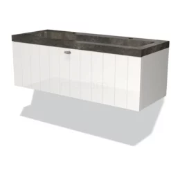 Modulo Badkamermeubel Met Wastafel | 120 Cm Hoogglans Wit Lamel Front Natuursteen 1 Lade