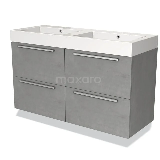 Dankzij het stijlvolle design is dit badkamermeubel de eyecatcher van uw badkamer. De onderkast is voorzien van een vlak front en heeft een afwerking in lichtgrijs beton. Deze stoere betonlook geeft uw badkamerinterieur een industriële look-and-feel. Daarnaast zorgt het vlakke front voor een tijdloze touch. De handgrepen dient u zelf toe te voegen. Deze zijn verkrijgbaar in verschillende kleuren en vormen.