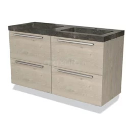 De natuurstenen Nano-wastafel geeft het meubel een luxueuze uitstraling. Dit exemplaar is gemaakt van blue stone. Deze steensoort is rechtstreeks uit de natuur gehaald, wat betekent dat de wastafel een unieke kleur en tekening heeft. Bovendien gaat dit duurzame materiaal bij goed onderhoud een leven lang mee.