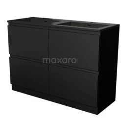 Dankzij het stijlvolle design is dit badkamermeubel de eyecatcher van uw badkamer. De onderkast is voorzien van een greeploos front en heeft een mat zwarte afwerking. Deze kleur vormt een mooie basis voor een industrieel interieur en is ideaal om contrast aan te brengen in de ruimte. Daarnaast zorgt het greeploze front voor een strakke touch. De handgrepen dient u zelf toe te voegen. Deze zijn verkrijgbaar in verschillende kleuren en vormen.