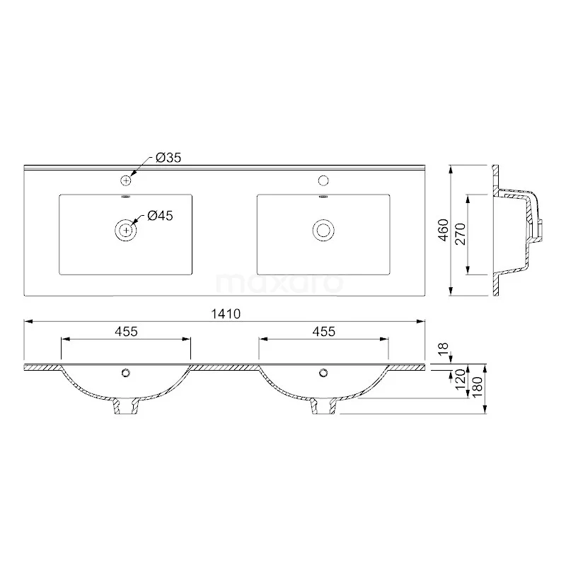 Het Modulo-badkamermeubel van 140 cm staat dagelijks centraal voor uw persoonlijke verzorging zoals make-up aanbrengen, scheren of tandenpoetsen. De wastafel heeft 2 kraangaten en is ideaal om door meerdere personen tegelijk te gebruiken. Ook biedt het meubel voldoende ruimte om uw toilet- en verzorgingsproducten netjes op te bergen.