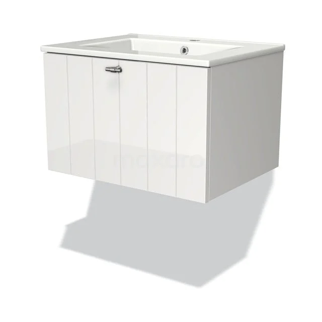 Modulo Badkamermeubel Met Wastafel | 60 Cm Hoogglans Wit Lamel Front Keramiek 1 Lade