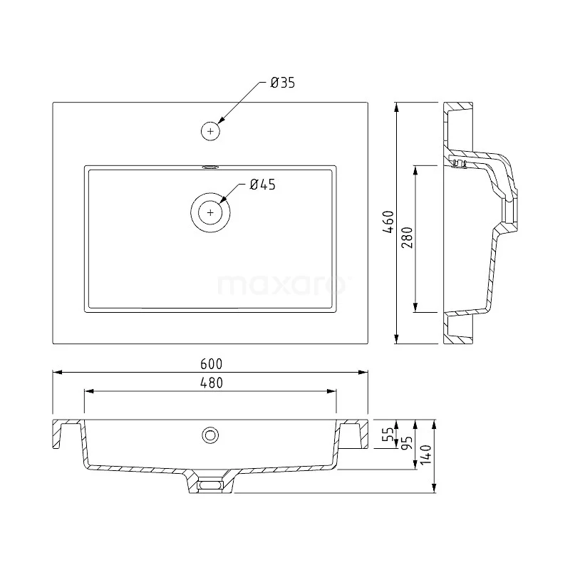 Modulo Badkamermeubel Met Wastafel | 60 Cm Mat Wit Greeploos Front Mineraalmarmer 1 Lade
