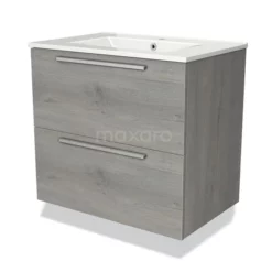 Dankzij het stijlvolle design is dit badkamermeubel de eyecatcher van uw badkamer. De onderkast is voorzien van een vlak front en heeft een grijs eiken afwerking. Deze prachtige eikenlook is een sfeervolle toevoeging aan uw badkamerinterieur. Daarnaast zorgt het vlakke front voor een tijdloze touch. De handgrepen dient u zelf toe te voegen. Deze zijn verkrijgbaar in verschillende kleuren en vormen