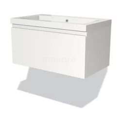 Modulo Badkamermeubel Met Wastafel | 80 Cm Mat Wit Greeploos Front Mineraalmarmer 1 Lade