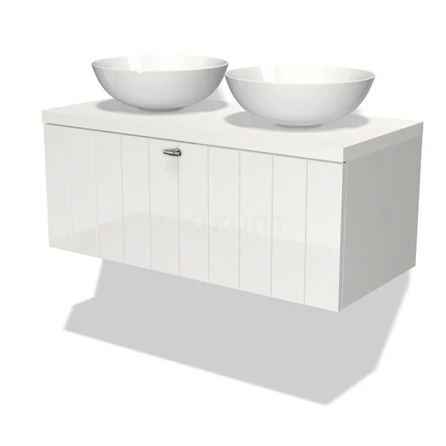 Dankzij het prachtige design is dit badkamermeubel de eyecatcher van uw badkamer. De hoogglans witte onderkast heeft een moderne uitstraling en is voorzien van een wastafelblad in mat wit. Daarnaast beschikt het meubel over een lamelfront voor een landelijke touch. De handgreep dient u zelf toe te voegen. Deze is verkrijgbaar in verschillende kleuren en vormen.