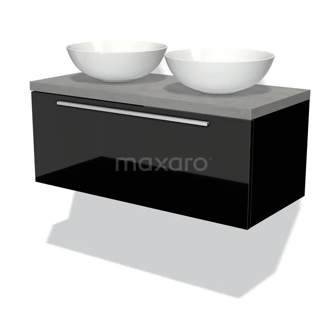 Dankzij het prachtige design is dit badkamermeubel de eyecatcher van uw badkamer. De hoogglans zwarte onderkast heeft een industriële look-and-feel en is voorzien van een wastafelblad in lichtgrijs beton. Daarnaast beschikt het meubel over een vlak front voor een tijdloze touch. De handgreep dient u zelf toe te voegen. Deze is verkrijgbaar in verschillende kleuren en vormen.