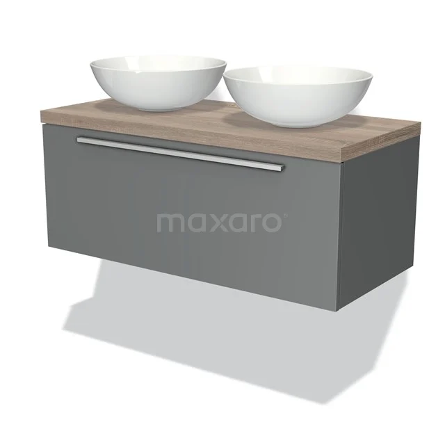 Dankzij het prachtige design is dit badkamermeubel de eyecatcher van uw badkamer. De middengrijze onderkast heeft een moderne uitstraling en is voorzien van een wastafelblad in eiken. Daarnaast beschikt het meubel over een vlak front voor een tijdloze touch. De handgreep dient u zelf toe te voegen. Deze is verkrijgbaar in verschillende kleuren en vormen.