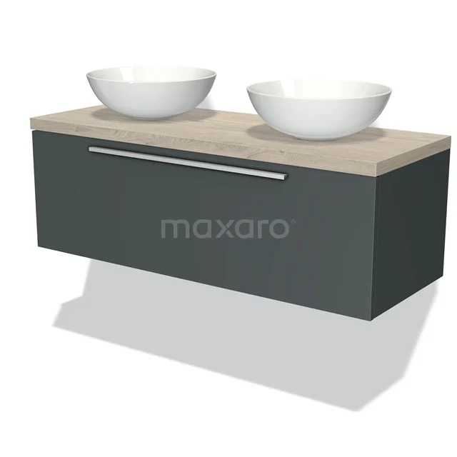 Dankzij het prachtige design is dit badkamermeubel de eyecatcher van uw badkamer. De donkergrijze onderkast heeft een moderne uitstraling en is voorzien van een wastafelblad in lichtgrijs eiken. Daarnaast beschikt het meubel over een vlak front voor een tijdloze touch. De handgreep dient u zelf toe te voegen. Deze is verkrijgbaar in verschillende kleuren en vormen.