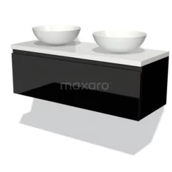 Dankzij het prachtige design is dit badkamermeubel de eyecatcher van uw badkamer. De hoogglans zwarte onderkast heeft een industriële look-and-feel en is voorzien van een wastafelblad in hoogglans wit. Daarnaast beschikt het meubel over een greeploos front voor een strakke touch.
