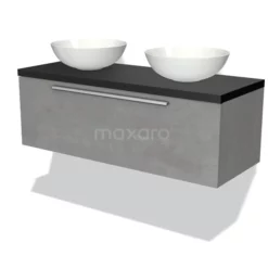 Dankzij het prachtige design is dit badkamermeubel de eyecatcher van uw badkamer. De lichtgrijs betonnen onderkast heeft een stoere uitstraling en is voorzien van een wastafelblad in mat zwart. Daarnaast beschikt het meubel over een vlak front voor een tijdloze touch. De handgreep dient u zelf toe te voegen. Deze is verkrijgbaar in verschillende kleuren en vormen.