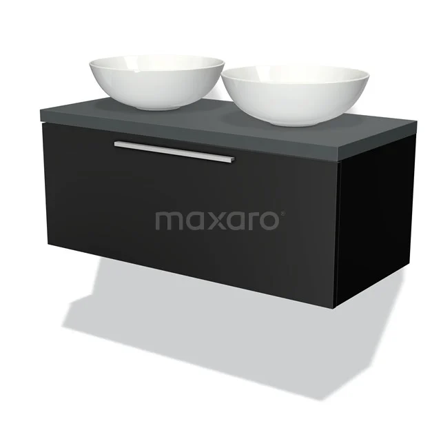 Dankzij het prachtige design is dit badkamermeubel de eyecatcher van uw badkamer. De mat zwarte onderkast heeft een industriële look-and-feel en is voorzien van een wastafelblad in donkergrijs. Daarnaast beschikt het meubel over een vlak front voor een tijdloze touch. De handgreep dient u zelf toe te voegen. Deze is verkrijgbaar in verschillende kleuren en vormen.