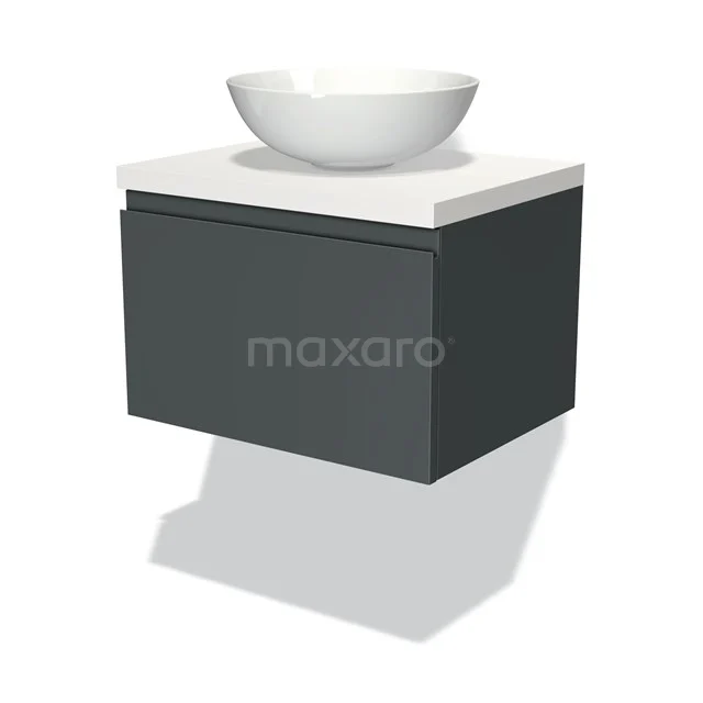Dankzij het prachtige design is dit badkamermeubel de eyecatcher van uw badkamer. De donkergrijze onderkast heeft een moderne uitstraling en is voorzien van een wastafelblad in mat wit. Daarnaast beschikt het meubel over een greeploos front voor een strakke touch.