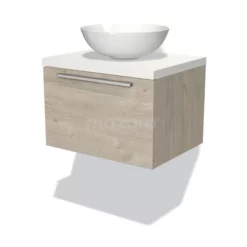 Dankzij het prachtige design is dit badkamermeubel de eyecatcher van uw badkamer. De lichtgrijs eiken onderkast heeft een sfeervolle uitstraling en is voorzien van een wastafelblad in mat wit. Daarnaast beschikt het meubel over een vlak front voor een tijdloze touch. De handgreep dient u zelf toe te voegen. Deze is verkrijgbaar in verschillende kleuren en vormen.