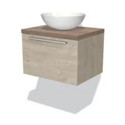 Dankzij het prachtige design is dit badkamermeubel de eyecatcher van uw badkamer. De lichtgrijs eiken onderkast heeft een sfeervolle uitstraling en is voorzien van een wastafelblad in middenbruin eiken. Daarnaast beschikt het meubel over een vlak front voor een tijdloze touch. De handgreep dient u zelf toe te voegen. Deze is verkrijgbaar in verschillende kleuren en vormen.