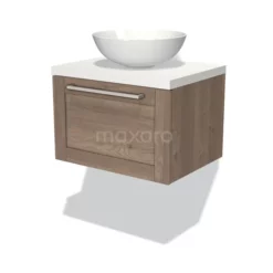 Dankzij het prachtige design is dit badkamermeubel de eyecatcher van uw badkamer. De middenbruin eiken onderkast heeft een warme uitstraling en is voorzien van een wastafelblad in mat wit. Daarnaast beschikt het meubel over een kaderfront voor een klassieke touch. De handgreep dient u zelf toe te voegen. Deze is verkrijgbaar in verschillende kleuren en vormen.