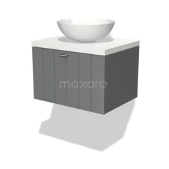 Dankzij het prachtige design is dit badkamermeubel de eyecatcher van uw badkamer. De middengrijze onderkast heeft een moderne uitstraling en is voorzien van een wastafelblad in mat wit. Daarnaast beschikt het meubel over een lamelfront voor een landelijke touch. De handgreep dient u zelf toe te voegen. Deze is verkrijgbaar in verschillende kleuren en vormen.