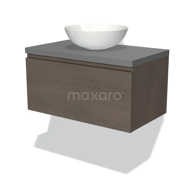 Dankzij het prachtige design is dit badkamermeubel de eyecatcher van uw badkamer. De donkerbruin eiken onderkast heeft een warme uitstraling en is voorzien van een wastafelblad in middengrijs. Daarnaast beschikt het meubel over een vlak front voor een tijdloze touch. De handgreep dient u zelf toe te voegen. Deze is verkrijgbaar in verschillende kleuren en vormen.