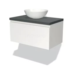 Dankzij het prachtige design is dit badkamermeubel de eyecatcher van uw badkamer. De mat witte onderkast heeft een moderne uitstraling en is voorzien van een wastafelblad in donkergrijs. Daarnaast beschikt het meubel over een greeploos front voor een strakke touch.