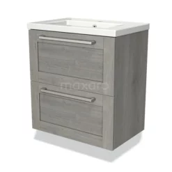 Dankzij het stijlvolle design is dit wastafelmeubel de eyecatcher van uw badkamer. De onderkast beschikt over een kaderfront en heeft een grijs eiken afwerking. Deze prachtige eikenlook is een sfeervolle toevoeging aan uw badkamerinterieur. Daarnaast zorgt het kaderfront voor een klassieke touch. De handgrepen dient u zelf toe te voegen. Deze zijn verkrijgbaar in verschillende kleuren en vormen.