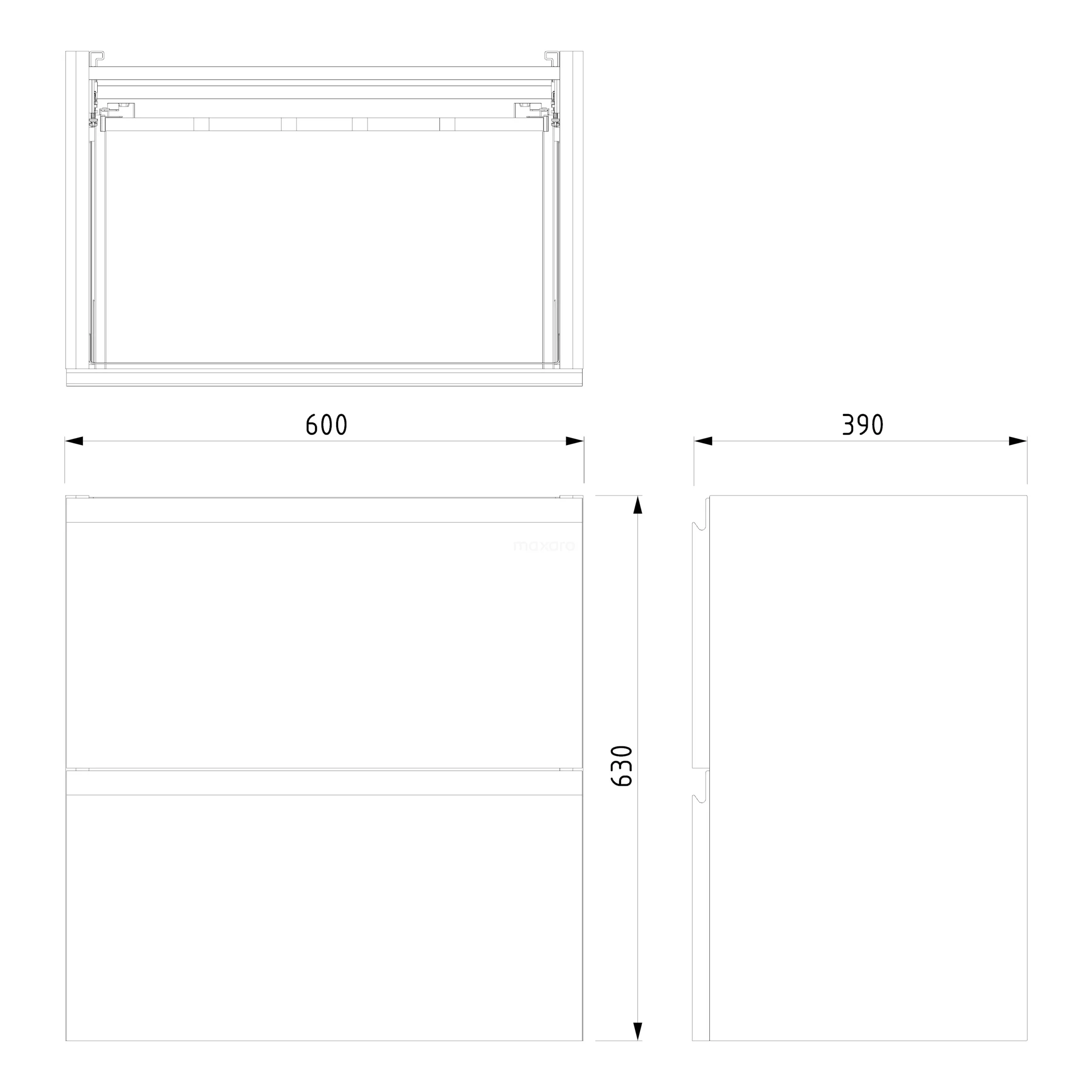 De onderkast is uitgerust met 2 lades, waarin u plaats heeft voor al uw badkamerspullen. Door het systeem met softopen en -close openen en sluiten de lades geluidloos. Bovendien zijn ze extra hoog en volledig uitschuifbaar. Verder heeft het meubel een slimme sifonuitsparing. Hierdoor benut u de beschikbare ruimte optimaal.