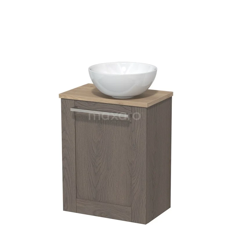 Dankzij het prachtige design is het meubel een blikvanger in de toiletruimte. De onderkast heeft een donkerbruin eiken afwerking met een lichtbruin eiken wastafelblad.