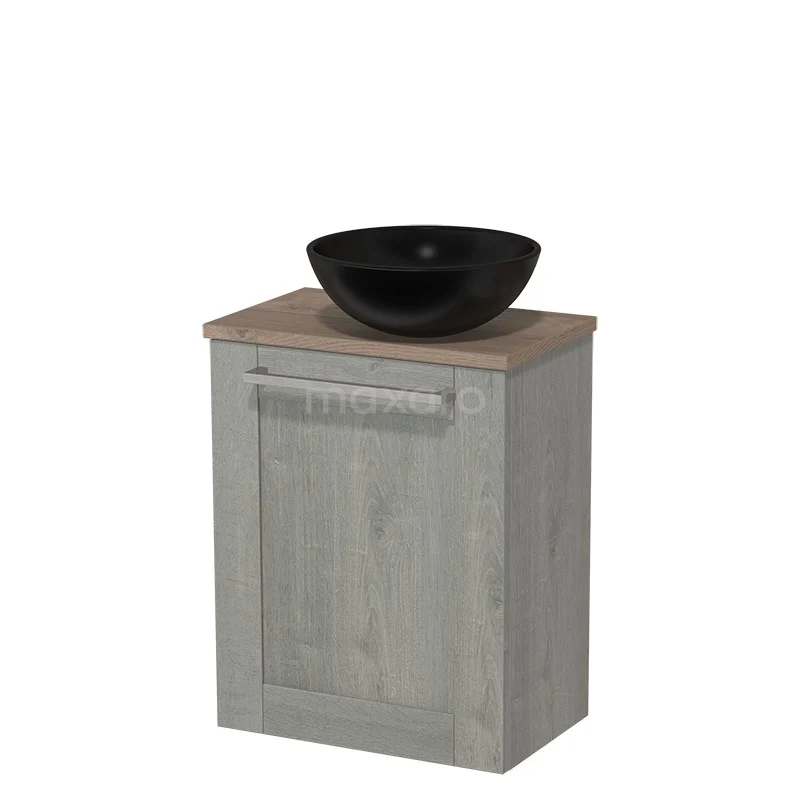 Dankzij het prachtige design is het meubel een blikvanger in de toiletruimte. De onderkast heeft een grijs eiken afwerking met een middenbruin eiken wastafelblad.