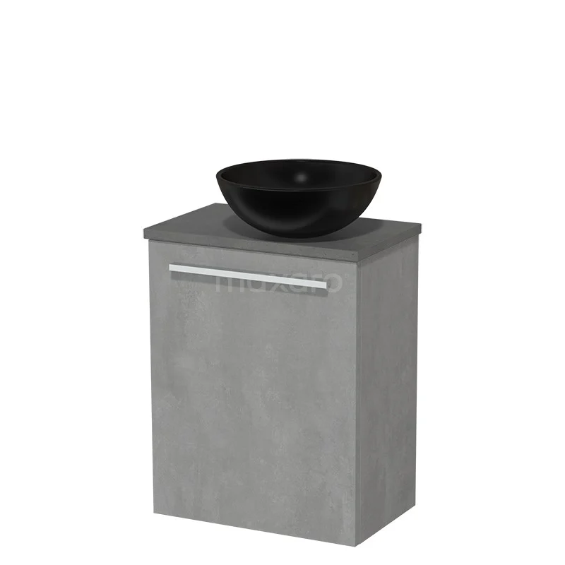 Dankzij het prachtige design is het meubel een blikvanger in de toiletruimte. De onderkast heeft een lichtgrijs betonnen afwerking met een donkergrijs beton wastafelblad.