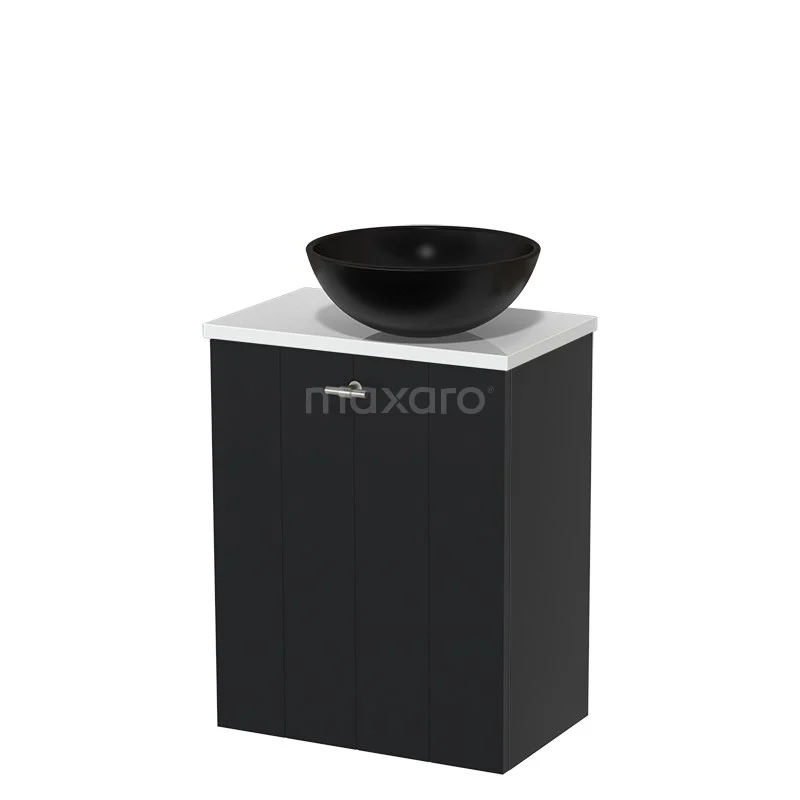 Dankzij het prachtige design is het meubel een blikvanger in de toiletruimte. De onderkast heeft een mat zwarte afwerking met een hoogglans wit wastafelblad.