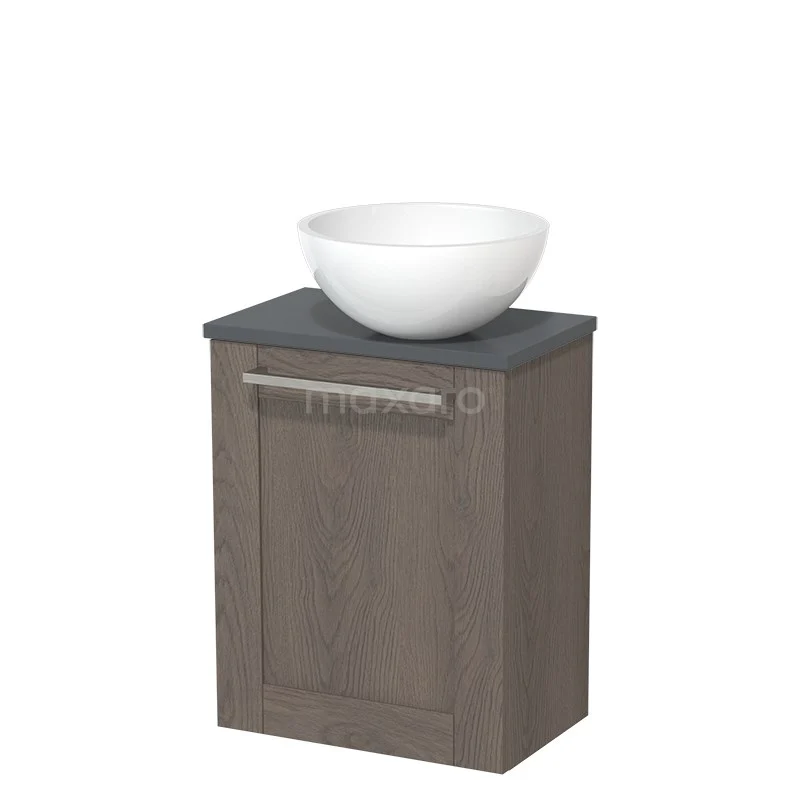 Dankzij het prachtige design is het meubel een blikvanger in de toiletruimte. De onderkast heeft een donkerbruin eiken afwerking met een donkergrijs wastafelblad.