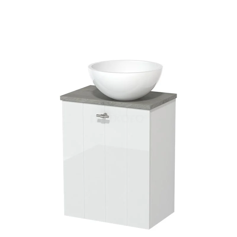 Dankzij het prachtige design is het meubel een blikvanger in de toiletruimte. De onderkast heeft een hoogglans witte afwerking met een grijs eiken wastafelblad.