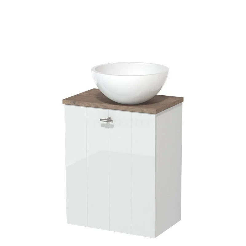 Dankzij het prachtige design is het meubel een blikvanger in de toiletruimte. De onderkast heeft een hoogglans witte afwerking met een middenbruin eiken wastafelblad.
