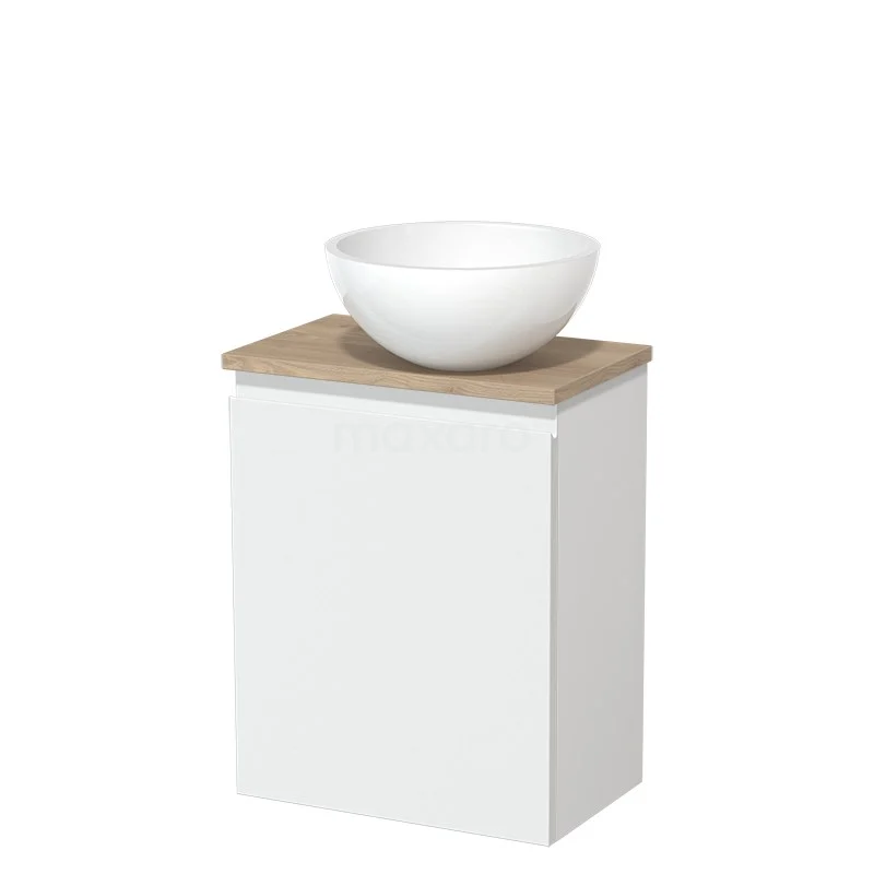 Dankzij het prachtige design is het meubel een blikvanger in de toiletruimte. De onderkast heeft een mat witte afwerking met een lichtbruin eiken wastafelblad.