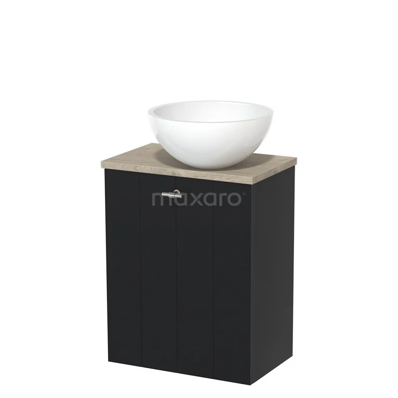 Toiletmeubel Met Waskom Mineraalmarmer Modulo Mat Zwart Lamel 41 Cm Lichtgrijs Eiken Blad