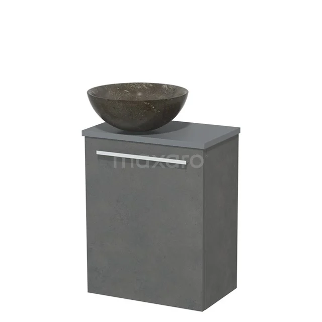 Dankzij het prachtige design is het meubel een blikvanger in de toiletruimte. De onderkast heeft een donkergrijze betonnen afwerking met een middengrijs wastafelblad.