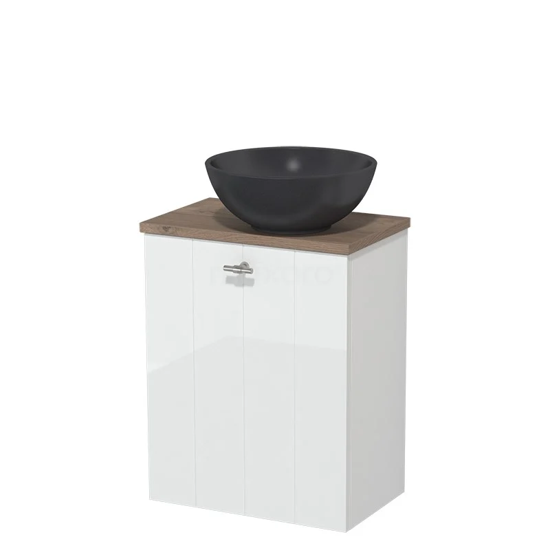 Dankzij het prachtige design is het meubel een blikvanger in de toiletruimte. De onderkast heeft een hoogglans witte afwerking met een middenbruin eiken wastafelblad.
