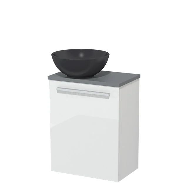 Dankzij het prachtige design is het meubel een blikvanger in de toiletruimte. De onderkast heeft een hoogglans witte afwerking met een middengrijs wastafelblad.