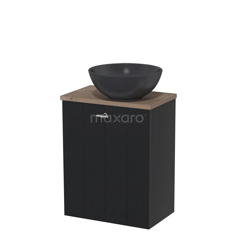 Dankzij het prachtige design is het meubel een blikvanger in de toiletruimte. De onderkast heeft een mat zwarte afwerking met een middenbruin eiken wastafelblad.