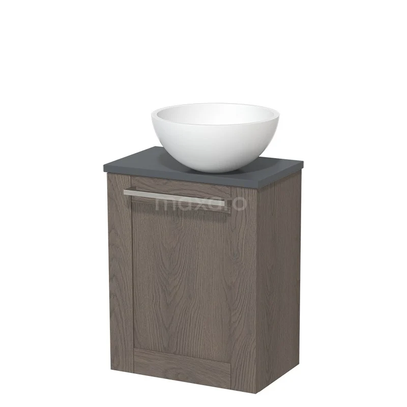 Dankzij het prachtige design is het meubel een blikvanger in de toiletruimte. De onderkast heeft een donkerbruin eiken afwerking met een donkergrijs wastafelblad.