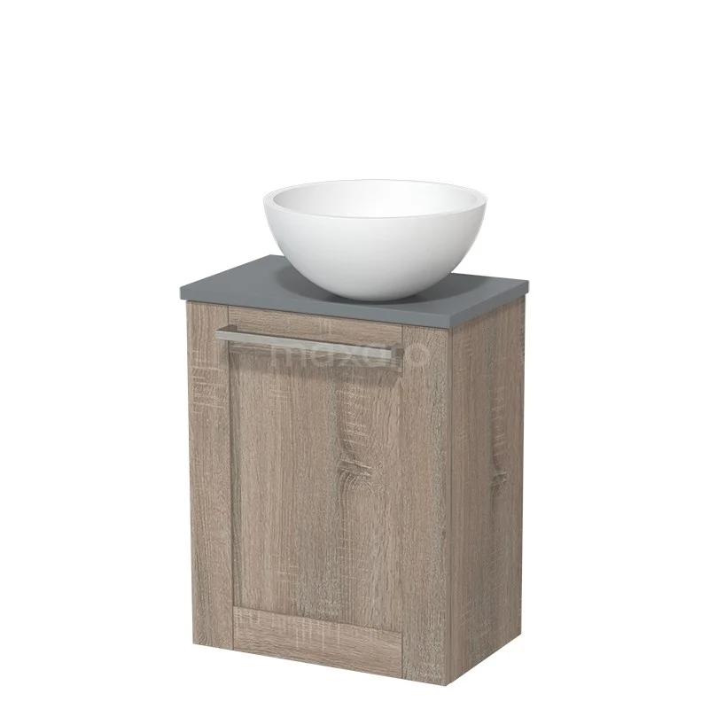 Dankzij het prachtige design is het meubel een blikvanger in de toiletruimte. De onderkast heeft een eiken afwerking met een middengrijs wastafelblad.
