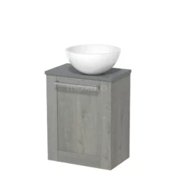 Het toiletmeubel is gecombineerd met een Mintra waskom. Deze stijlvolle waskom is gemaakt van solid surface met een mat witte afwerking.