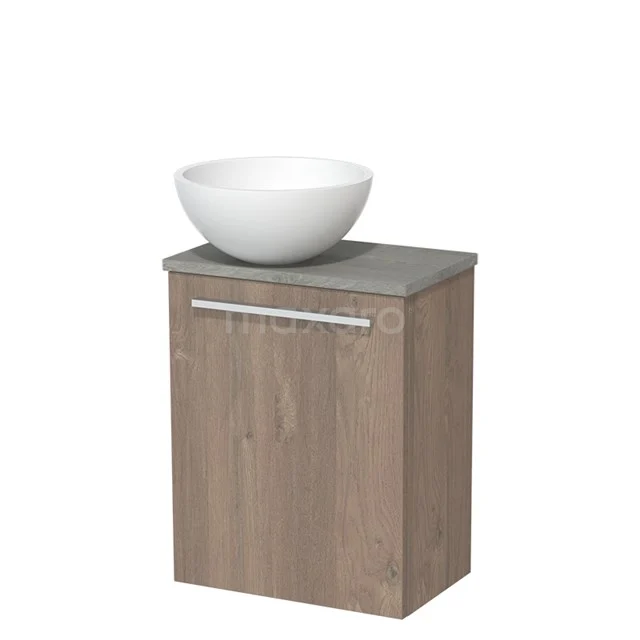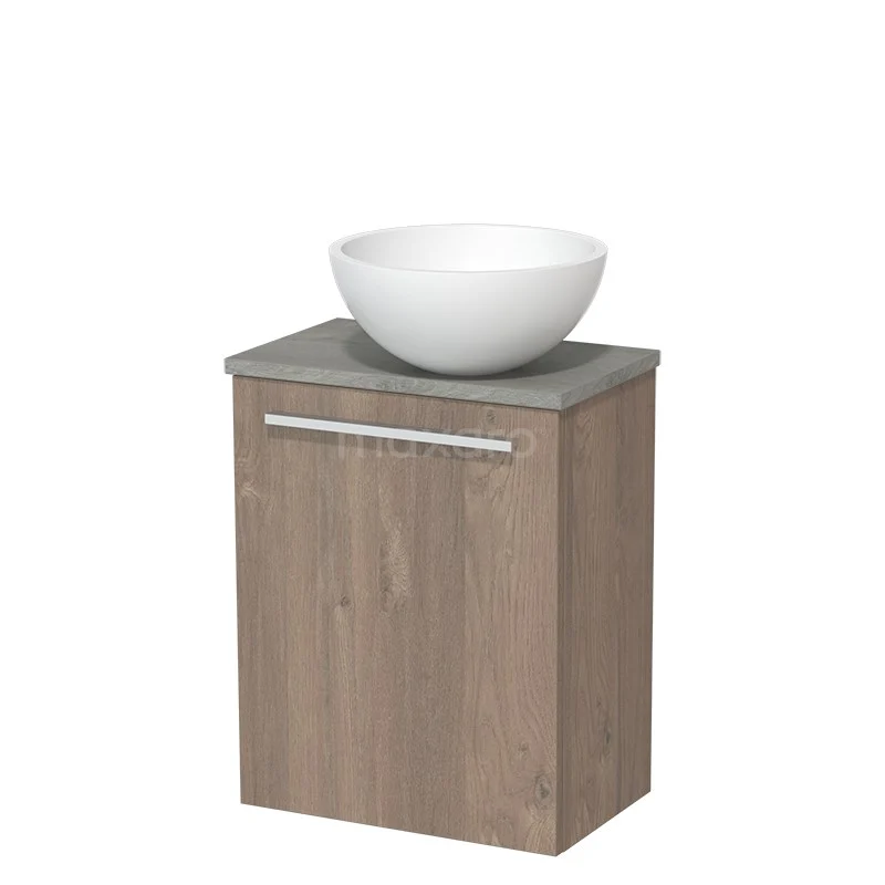 Dankzij het prachtige design is het meubel een blikvanger in de toiletruimte. De onderkast heeft een middenbruin eiken afwerking met een grijs eiken wastafelblad.