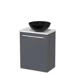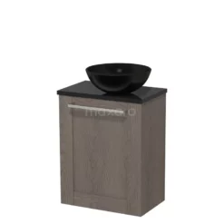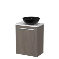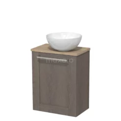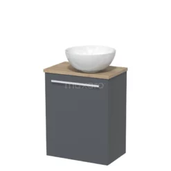 Toiletmeubel Met Waskom Keramiek Modulo Donkergrijs Greeploos 41 Cm Lichtbruin Eiken Blad