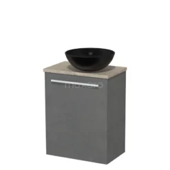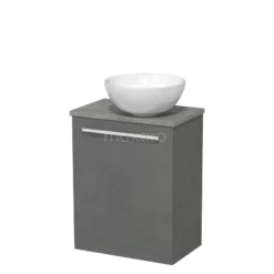Toiletmeubel Met Waskom Keramiek Modulo Donkergrijs Beton Vlak 41 Cm Lichtgrijs Eiken Blad